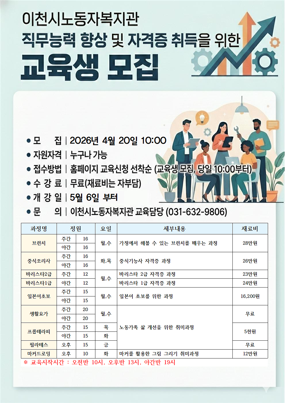 2026년도 이천시 노동자 종합 복지관 평생교육 직무향상 및 자격취득 과정 교육생을 모집합니다.