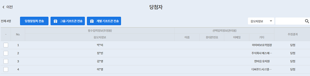 당첨되신 분들께는 개별연락 드리겠습니다.