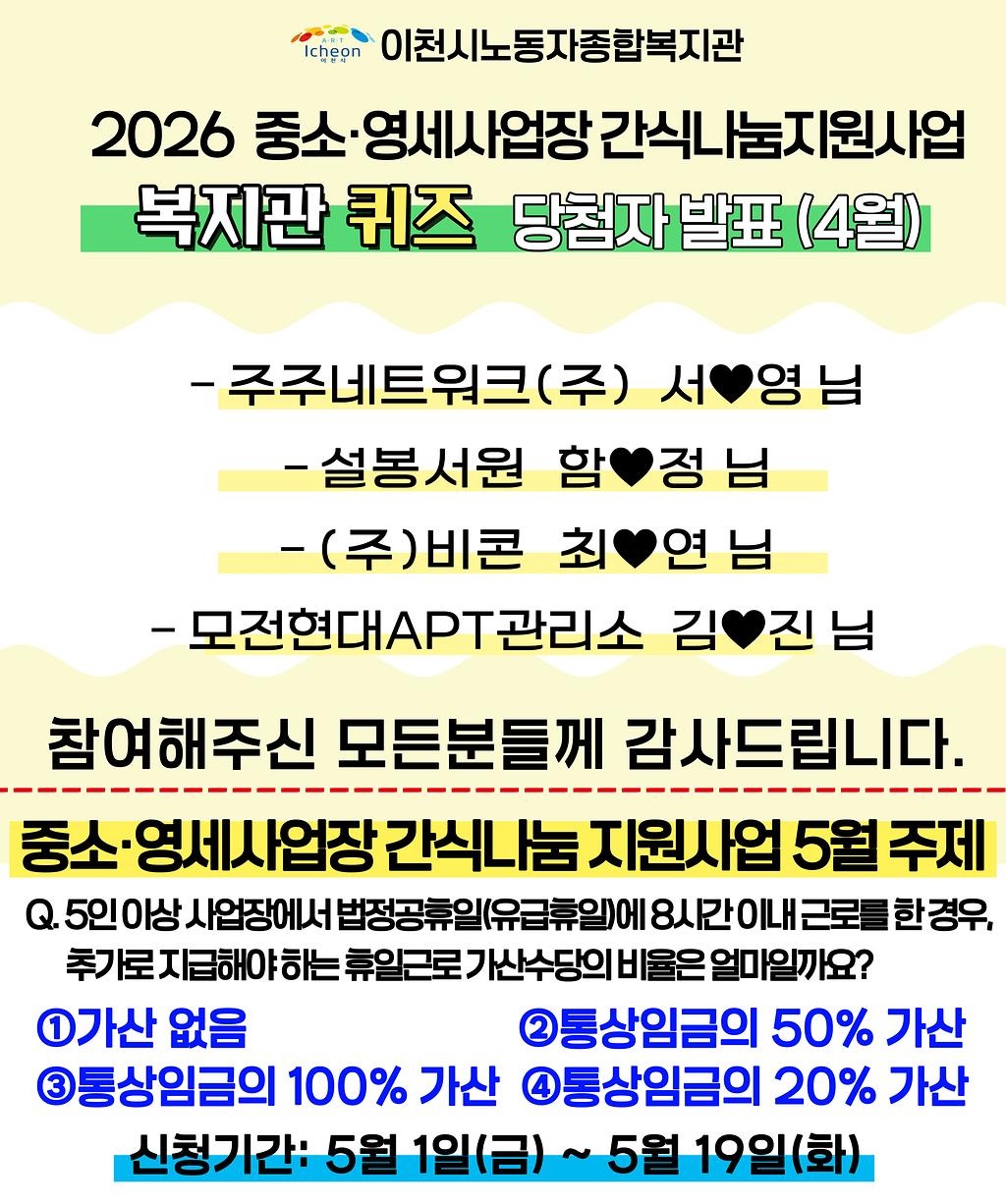2026 중소·영세사업장 간식나눔지원사업 4월 당첨자 발표